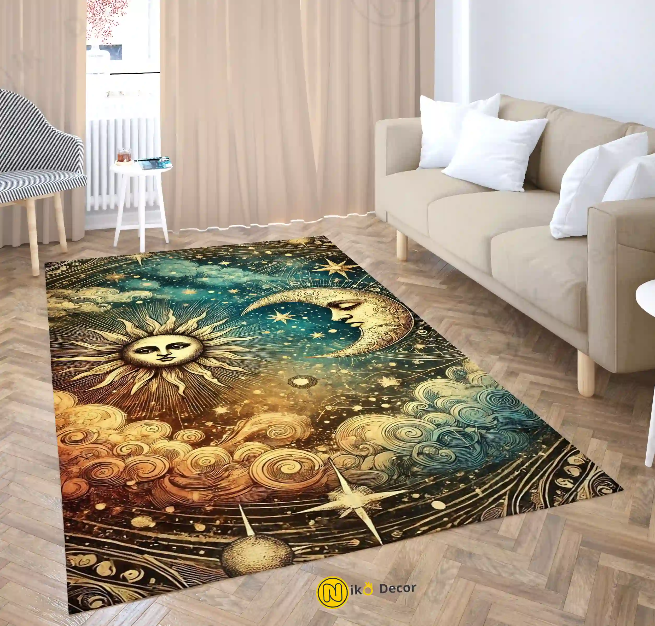 خانه فرش فرش مستطیل فرش اتاق خواب چاپی طرح ماه خورشید