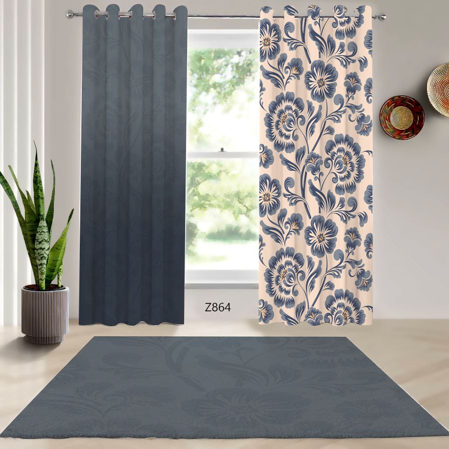 ست فرش فانتزی و پرده مخمل و هازان اتاق خواب طرح گل