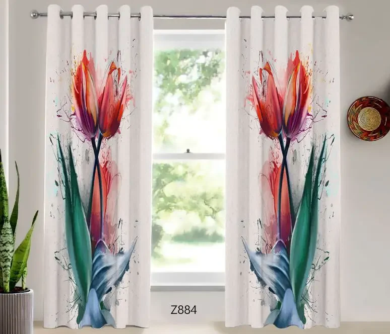 ست پرده مخمل یا هازان اتاق خواب طرح نقاشی گل